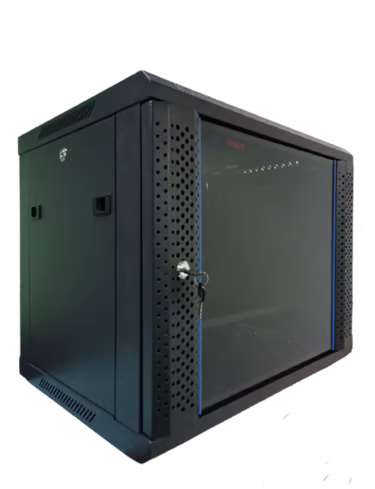 The HardRack wall-mounted cabinet is a fully enclosed unit designed to house critical server, storage, and networking equipment in a small format. This cabinet provides all of the features and security of a full-sized cabinet but in a reduced footprint.