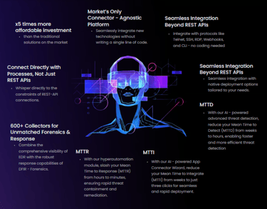With our hyperautomation module, slash your Mean Time to Response (MTTR) from hours to minutes, ensuring rapid threat containment and remediation.